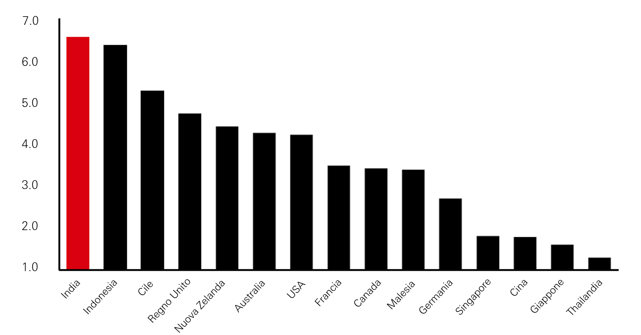 L'India offre un differenziale di rendimento rispetto a molti mercati emergenti e sviluppati