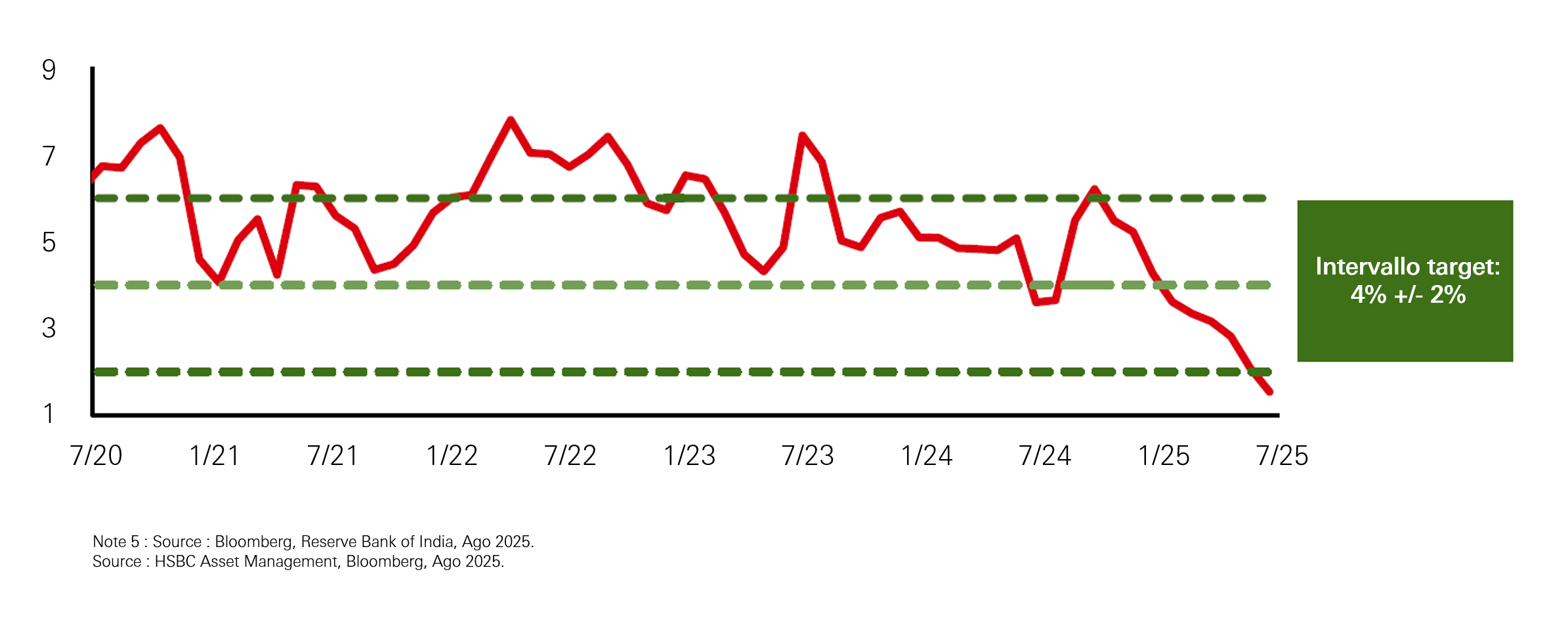 Nota 5: Fonte: Bloomberg, Reserve Bank of India, agosto 2025.