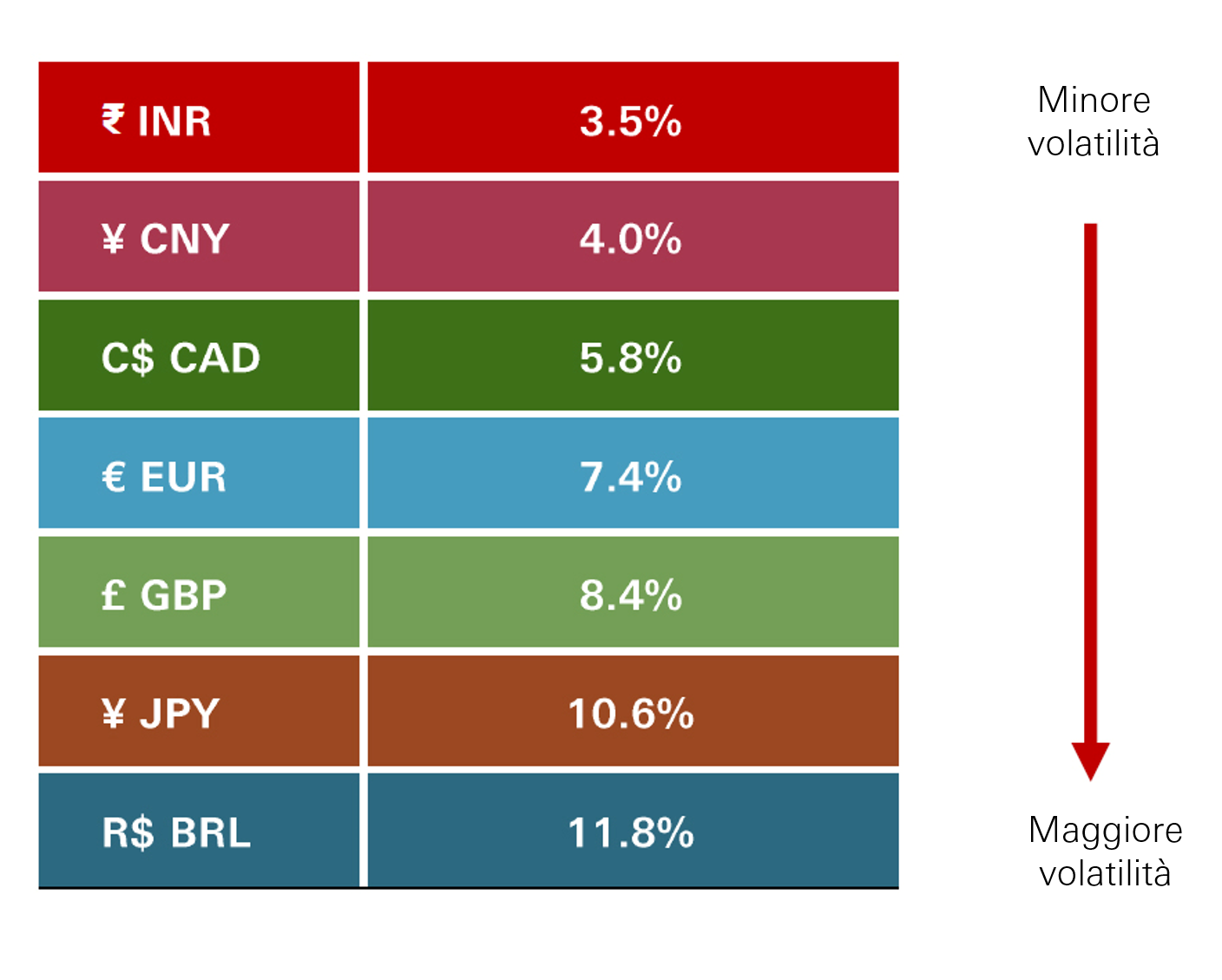 Valuta rispetto a USD, volatilità annualizzata su 3 anni7